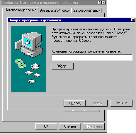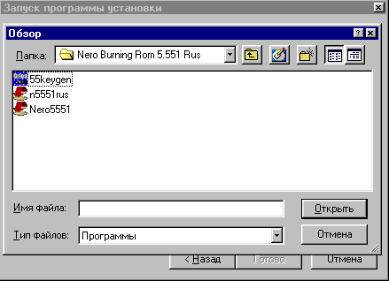 С помощью кнопки Обзор найдите файл установки. Вспоминаем, как он может называться. Скорее всего Install, может быть Setup, а может еще как-то. Что мы, кстати, забыли сделать? Правильно, прочитать файл README, в котором написано - подходит ли эта программа Вашему компьютеру (операционной системе). Видите, как неудобно устанавливать